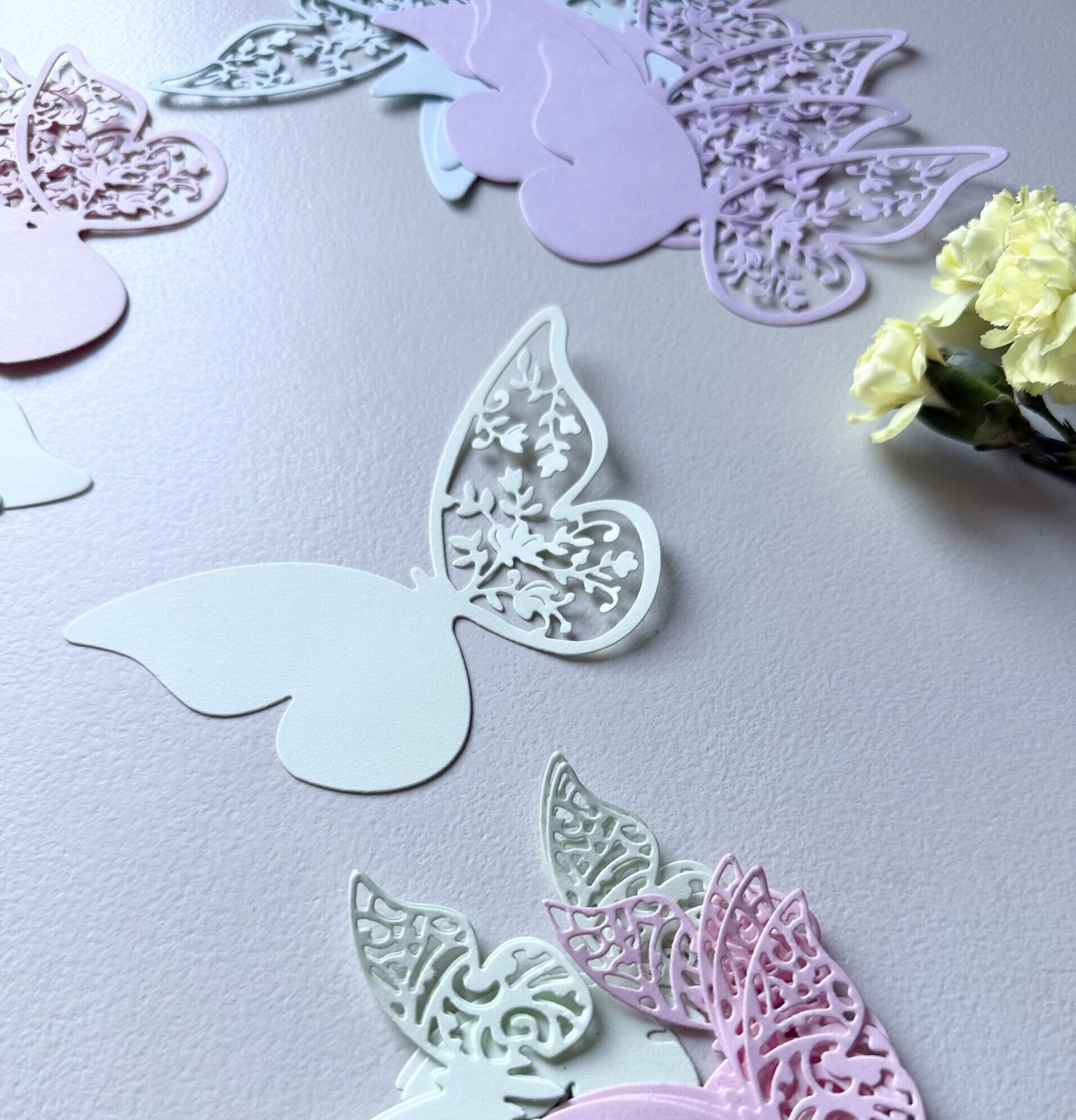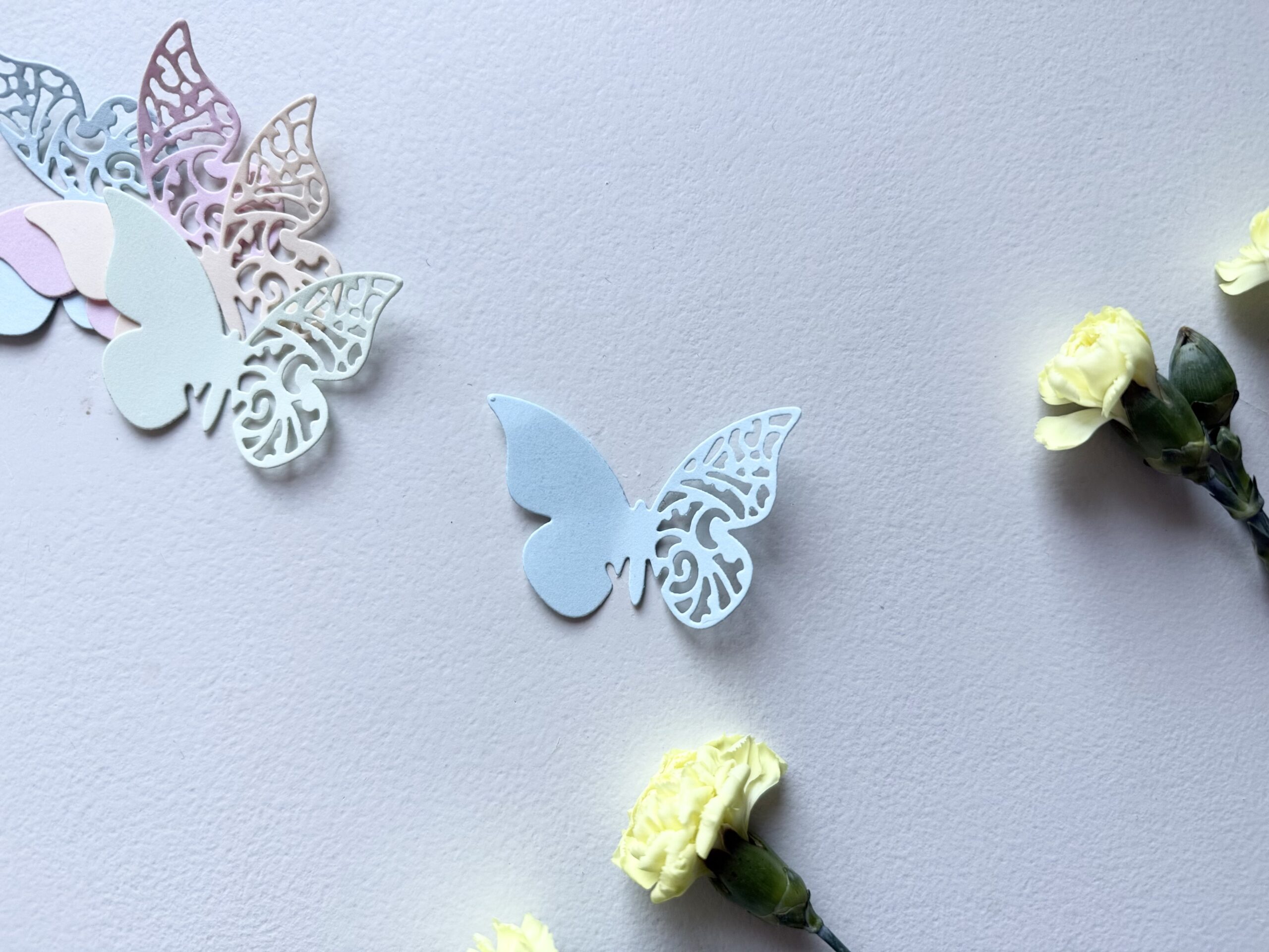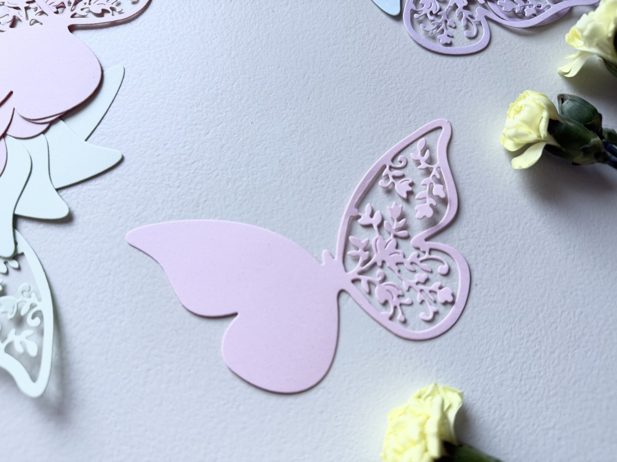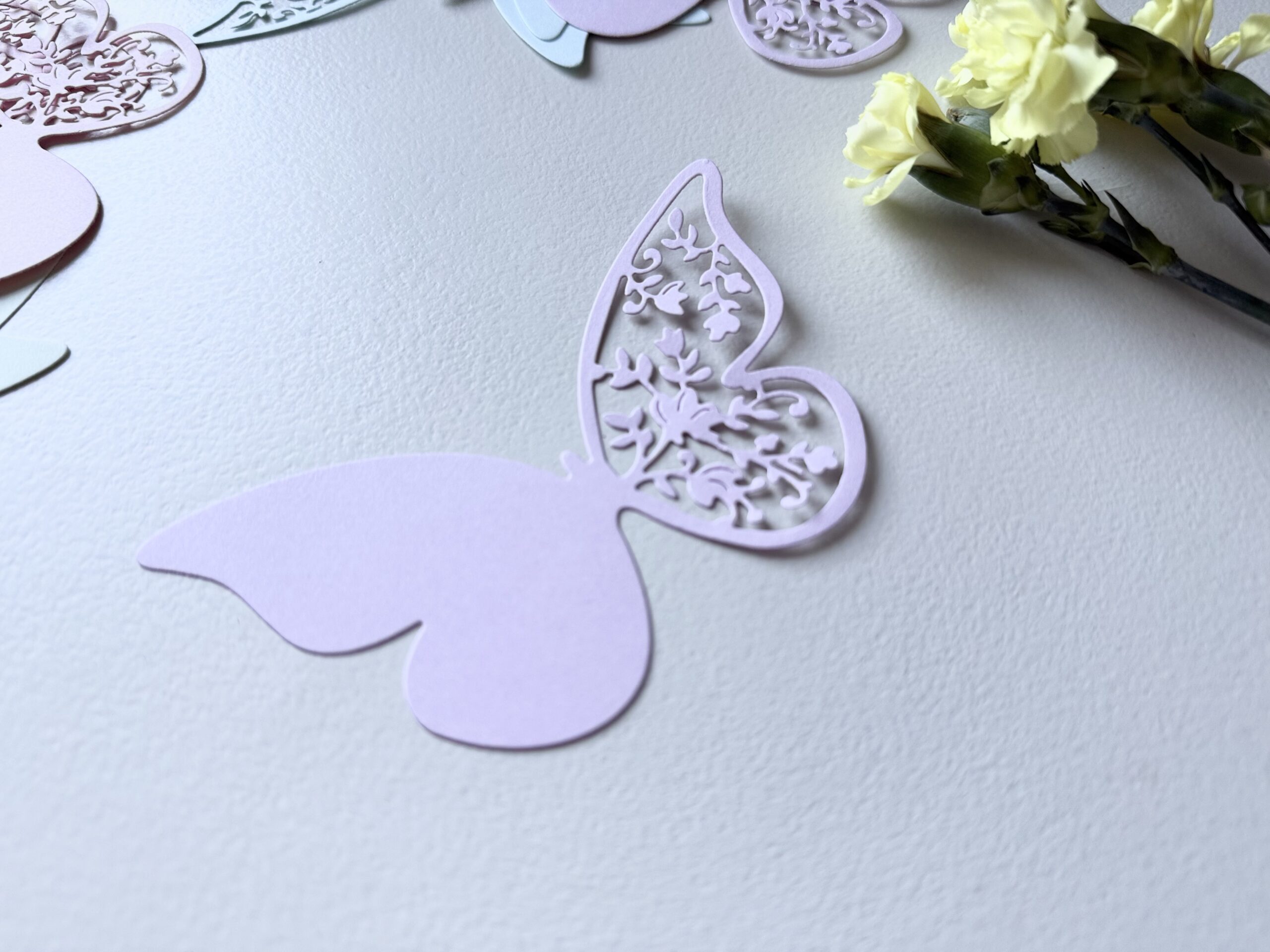 Elegantiškas, kruopščiai iškirptas popierinis drugelis – subtili dekoracija, suteikianti lengvumo ir žaismingumo bet kuriai erdvei. Pastelinės spalvos ir ažūriniai sparnelių raštai kuria lengvumo įspūdį, todėl ši dekoracija puikiai tinka šventėms, fotosesijoms, vaikų kambariams, rankdarbiams ar dovanų pakavimui.