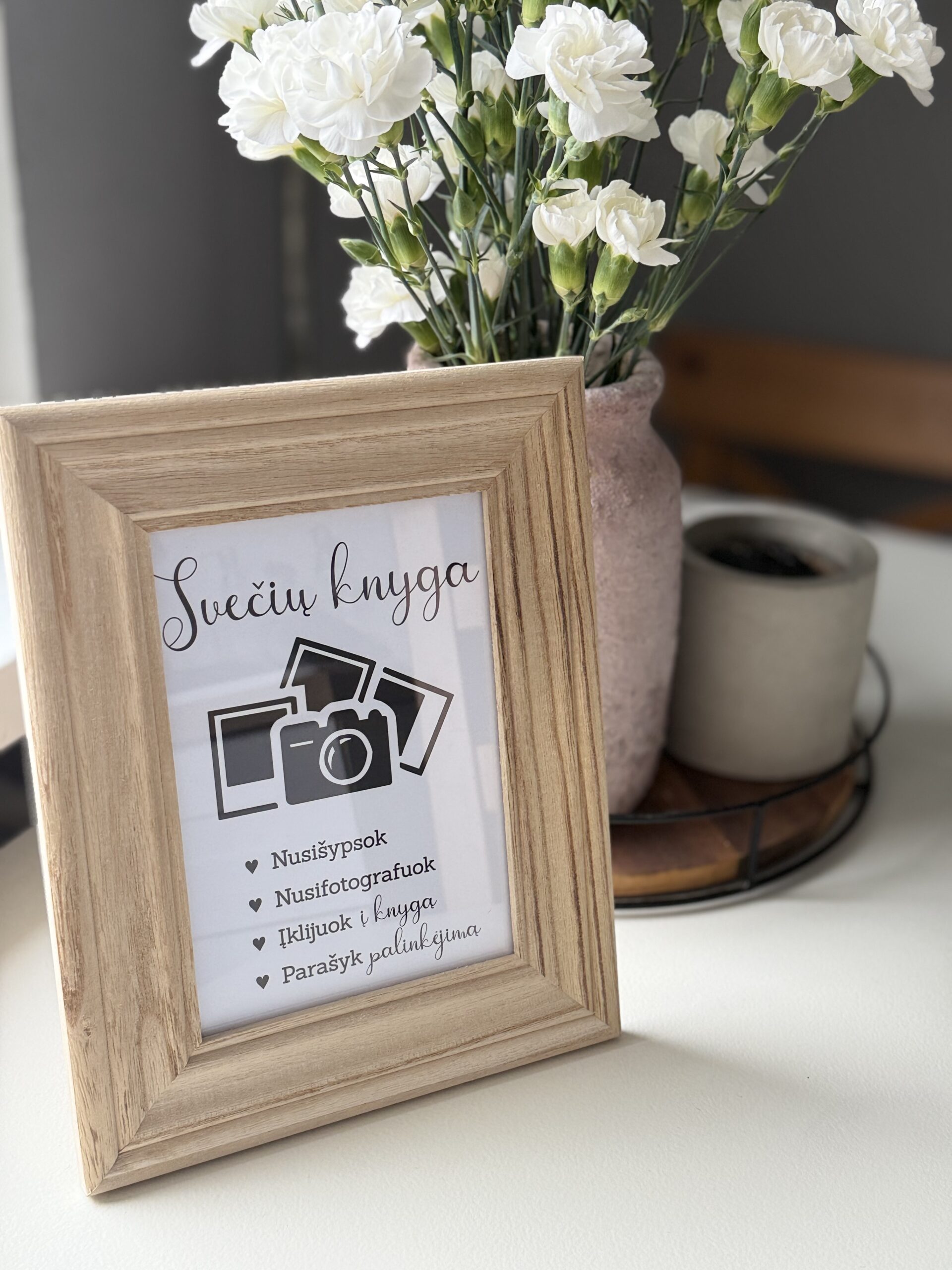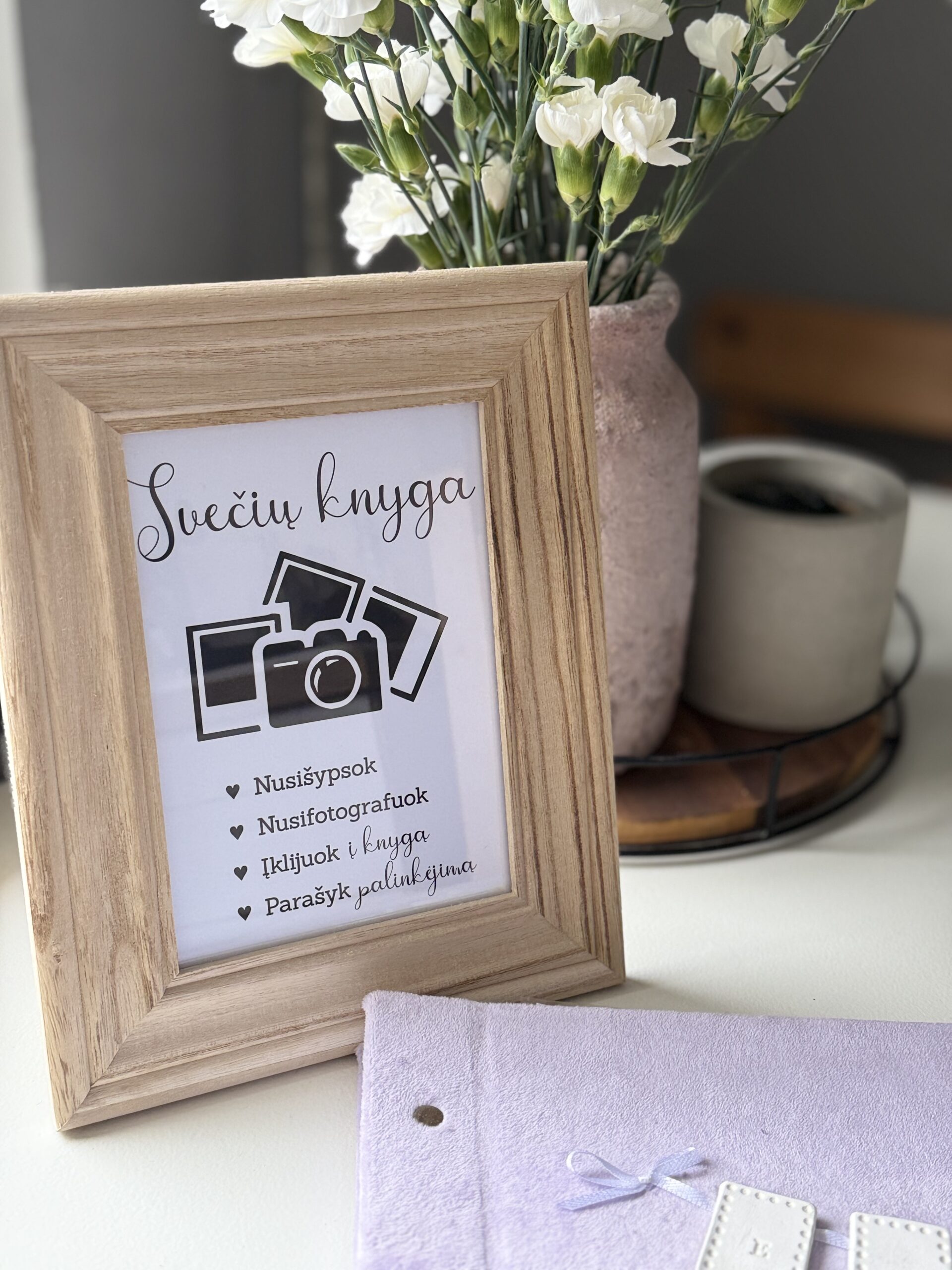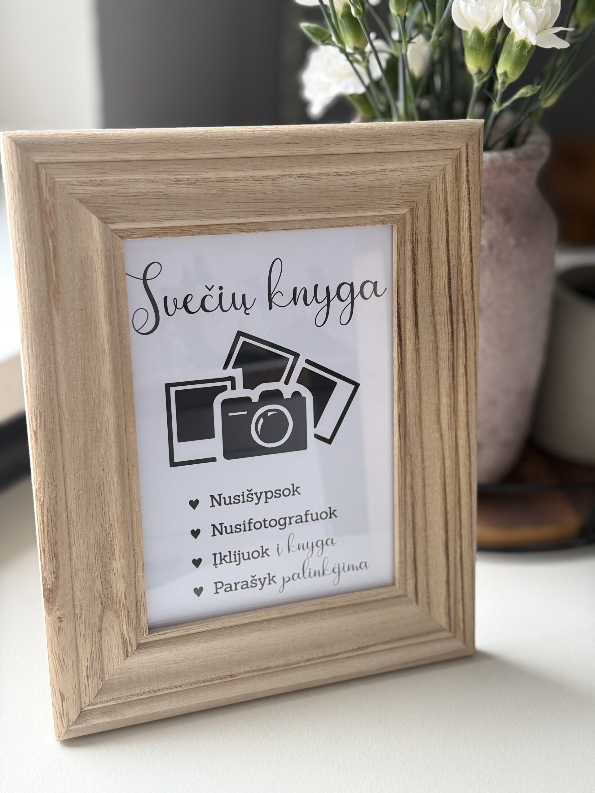 Svečių knygos rėmelis su instrukcija – mažas akcentas, kuriantis didelius prisiminimus.